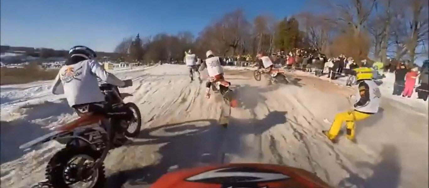 Na pierwszy rzut oka narciarstwo i motocykle nie mają ze sobą nic wspólnego. Nie mają, dopóki nie znajdziesz gości, którzy na płaskim i w mocno naśnieżonym terenie chcą się pościgać. Zarówno na nartach jak i na motocyklach. Nie ma innej opcji, to musiało zakończyć się dobrą zabawą!