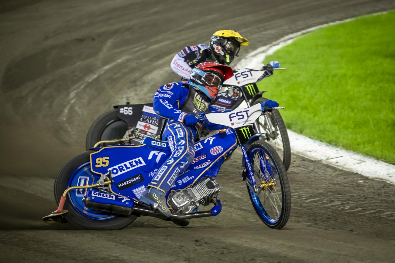 Ostatnia gonitwa we Wrocławiu to istne starcie tytanów. Niemalże przez cały dystans dystansu to Artem Łaguta był na prowadzeniu. Rosjanina zaciekle gonił jednak Zmarzlik, który konsekwentnie rozpędzał się po szerokiej. I gdy wszyscy widzieli już Łagutę na pierwszym miejscu, Zmarzlik w iście mistrzowskim stylu rozpędził się na wyjściu z ostatniego łuku i na kresce to on mógł cieszyć się z trzeciego zwycięstwa we wrocławskim Grand Prix!