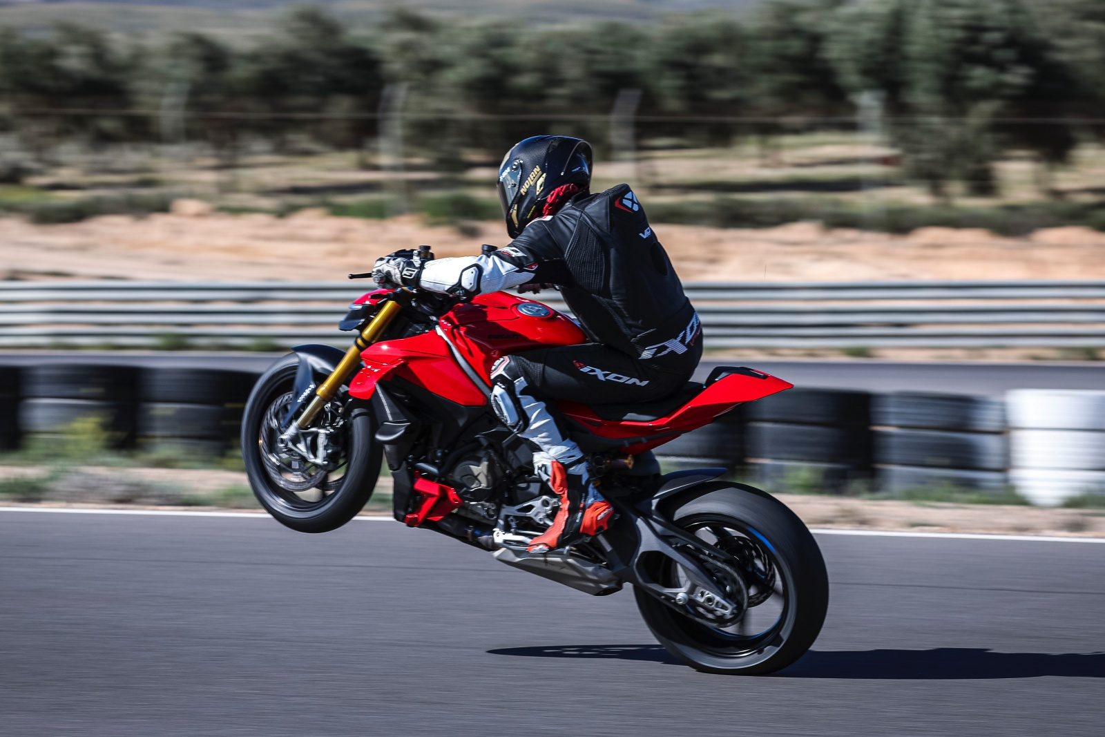 Tak po wyłączeniu wheelie control wyglądało każde wyjście z ciasnego zakręt. Mam piękna galerię zdjęć, gdzie bez mojej intencji przednie koło nie dotyka ziemi.