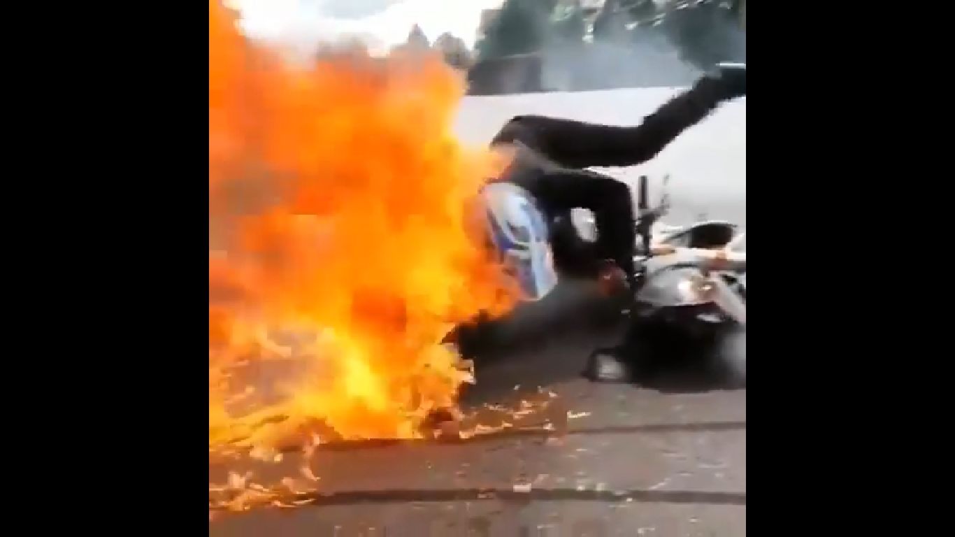Bohater filmu prawdopodobnie chciał zatrzymać się tuż obok beczki robiąc widowiskowe stoppie. Niestety nie wyszło mu to najlepiej i wpadł w beczkę, w której paliła się benzyna. Chwilę później sam stanął w płomieniach. Mamy nadzieje, że sprawa zakończyła się szczęśliwie dla motocyklisty!