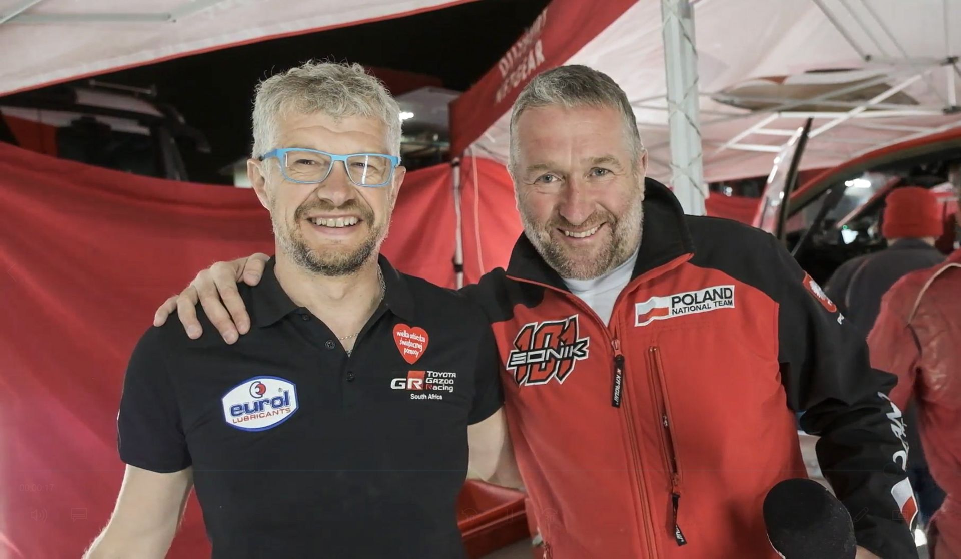 Rafał Sonik wykorzystał ten moment, by pozyskać od dakarowców gadżety na licytacje Wielkiej Orkiestry Świątecznej Pomocy. Zarówno od Polaków, jak i zagranicznych zespołów ścigającej się w samej czołówce stawki.