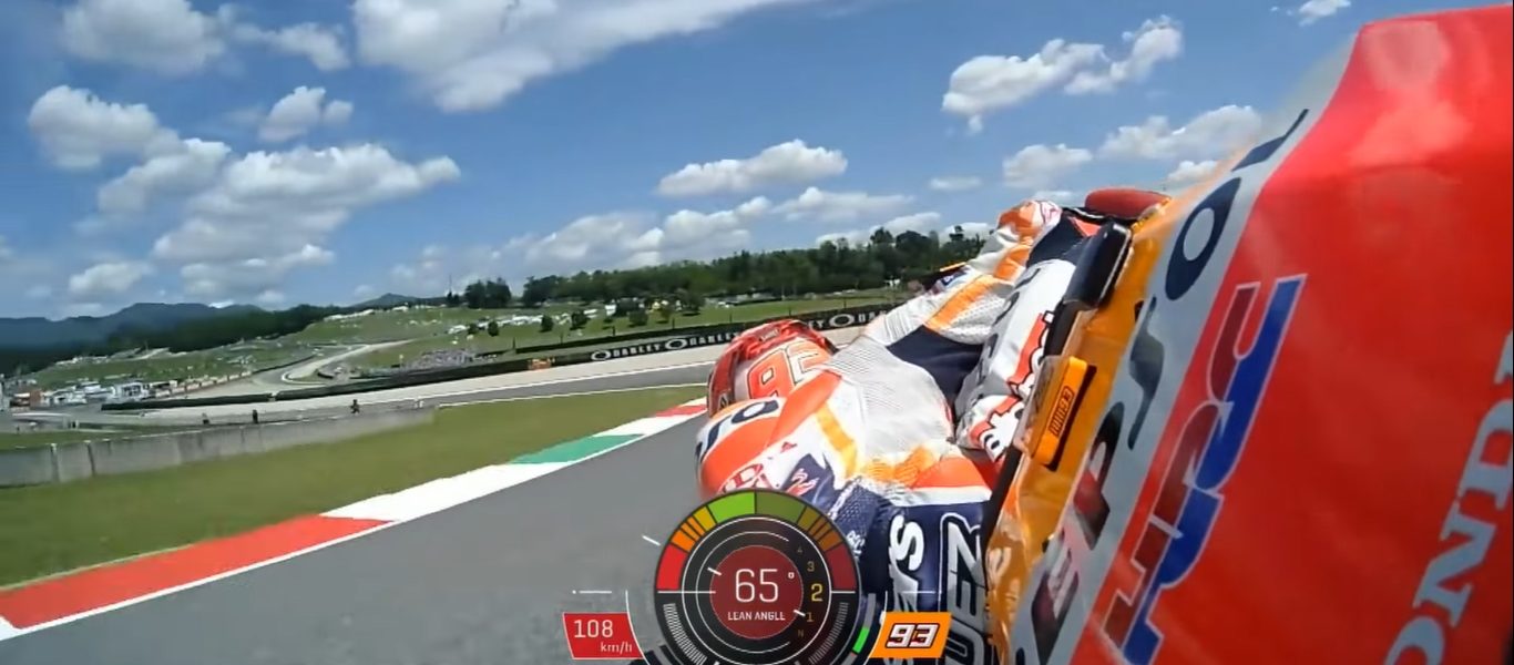 Tym razem Hiszpan po raz kolejny „zaprzeczył” prawom fizyki. Do tej pory uważano, że maksymalny kąt położenia motocykla w zakręcie wynosi 64 stopnie. Od zeszłego piątku wynosi 65 stopni!