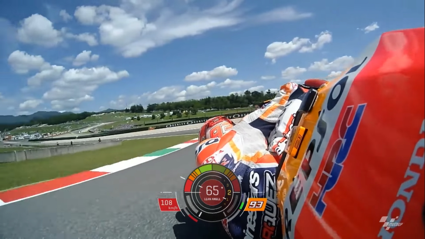 Tym razem Hiszpan po raz kolejny „zaprzeczył” prawom fizyki. Do tej pory uważano, że maksymalny kąt położenia motocykla w zakręcie wynosi 64 stopnie. Od zeszłego piątku wynosi 65 stopni!