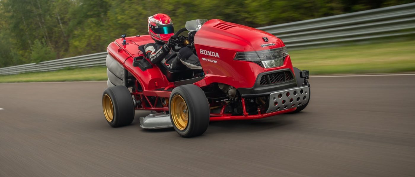 Kosiarka Hondy osiąga pierwsze 100 km/h w czasie niższym niż… 3 sekundy, a do prędkości „The Ton” (100 mph = 161 Km/h) jest w stanie przyspieszyć w nieco ponad 6 sekund. Prędkość maksymalna? 242,99 km/h. Wystarczająco żeby „szybko” skosić trawnik przed wizytą znajomych…