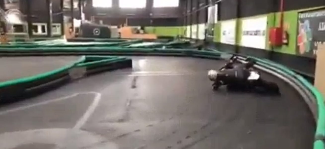 Ten kierowca na supermoto wpuszczony na tor kartingowy odnalazł chyba dolną granicę!