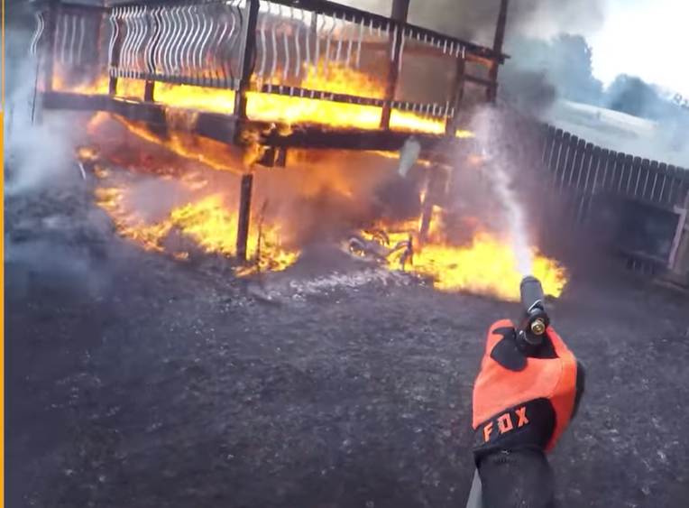 Internet pełny jest różnych i dziwnych filmów i akcji. Tym razem przedstawiamy Wam motocyklistę, który gdy zobaczył pożar w sąsiedztwie swojego domu nie wahał się nawet przez chwilę. Postawił motocykl przy drodze i ruszył gasić ogień! Bohater?