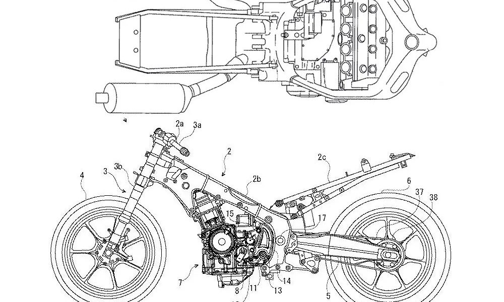Wraz z plotkami otrzymaliśmy szkice patentowe. Widzimy na nich przede wszystkim całkowicie nową ramę, która teraz prezentuje się „lżej, a główną zmianą jest zaczep tylnej ramy pomocniczej. Nowy „turystyk” otrzyma także carbonowy zbiornik z flitrem na opary paliwa, ale to wydaje się już całkiem oczywiste, zważywszy na to, że motocykl musi spełniać normę Euro5. Zwiększony zostanie również kolektor wydechowy.