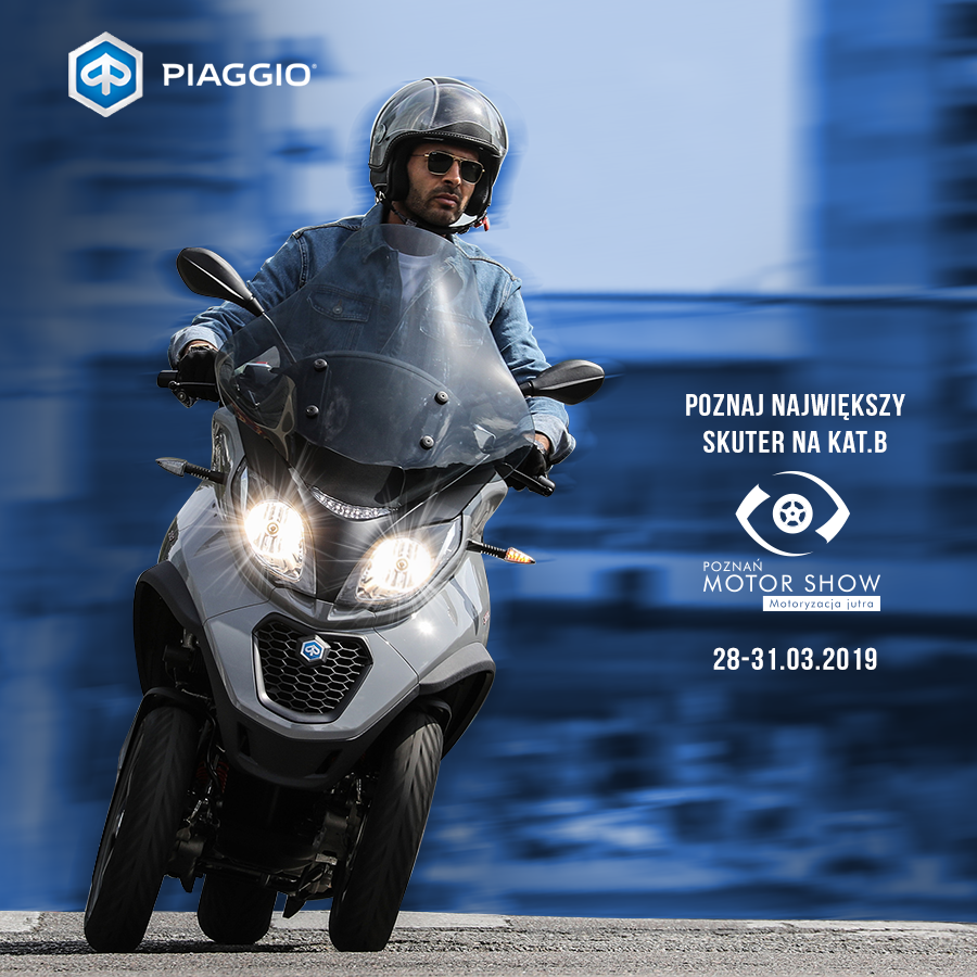 Piaggio MP3 w wersji HPE 500 zobaczyć będziecie mogli w dniach 28-31 marca 2019r. na stoisku poznańskiego dealera Piaggio – Liberty Motors Poznań.