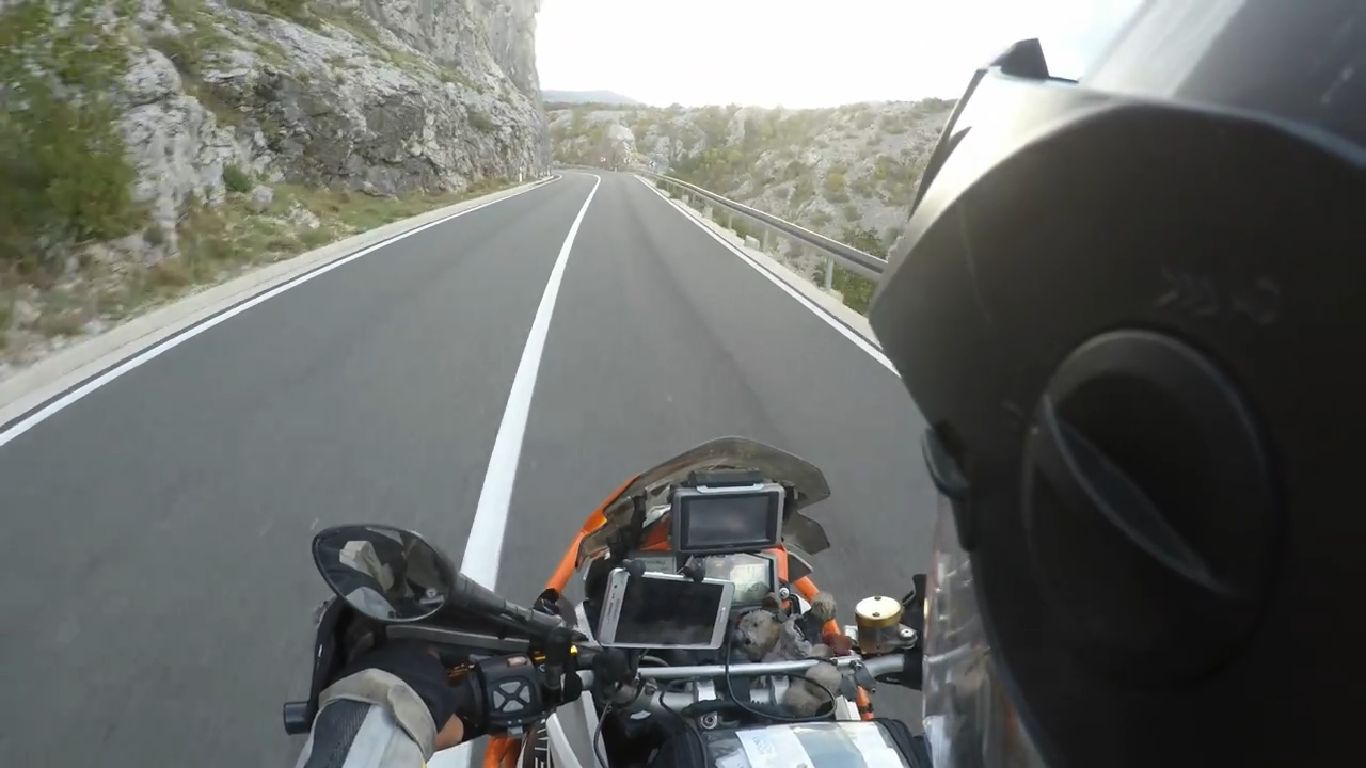 Przed wyjazdem o silnych wiatrach w tej części Chorwacji ostrzegał go napotkany starszy Pan. Jak widać motocyklista nie zdawał sobie sprawy ze skali trudności z jaką przyjdzie mu się zmierzyć. Sami zobaczcie jak silne były te podmuchy. Członek wyprawy Goodwill Journey nie miał szansy praktycznie nic zrobić – dobrze, że zatrzymał się jeden z kierowców i pomógł poszkodowanemu.