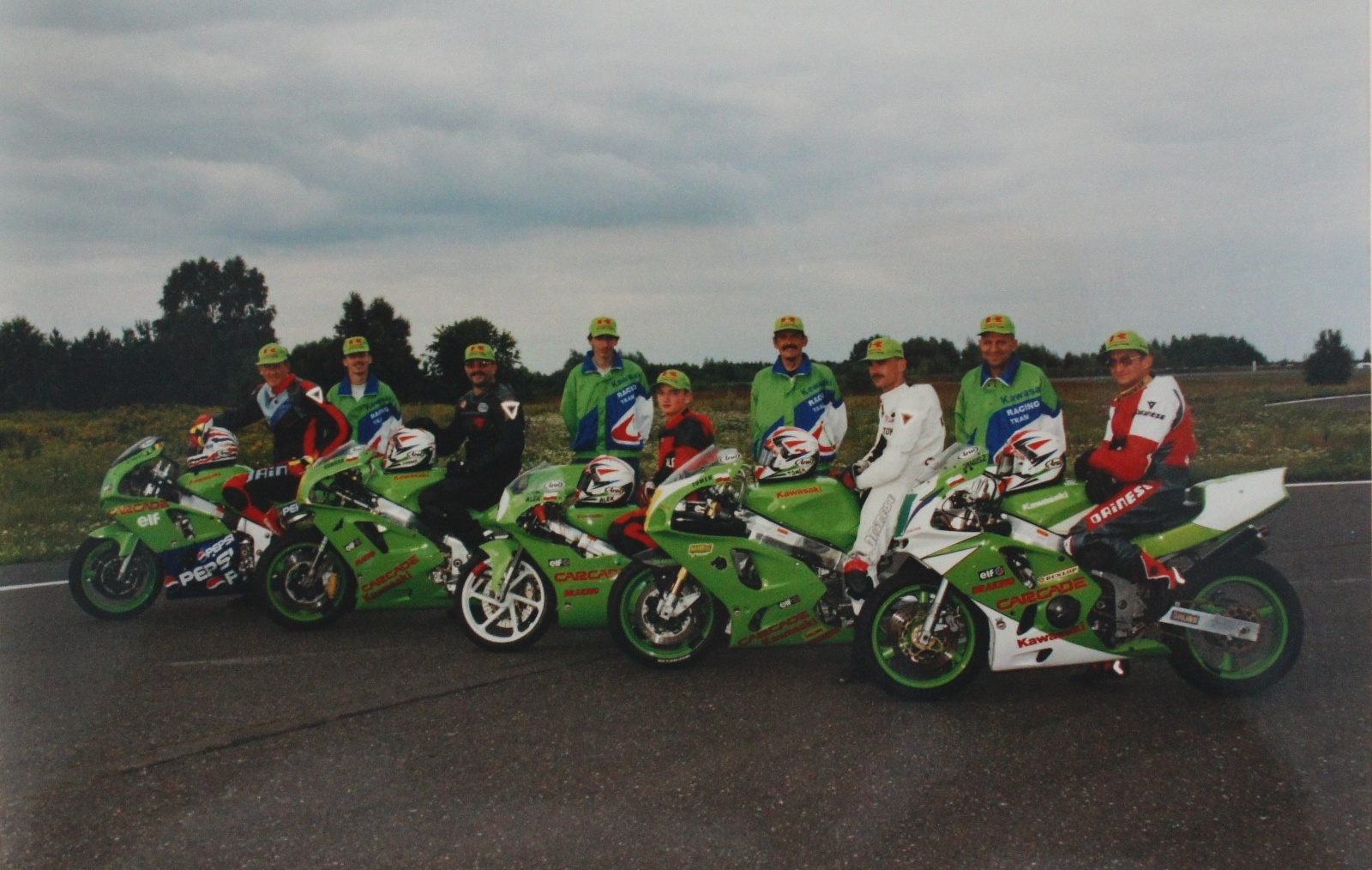 Polski zespół Kawasaki w sezonie 1992. Janusz Oskaldowicz pierwszy z prawej