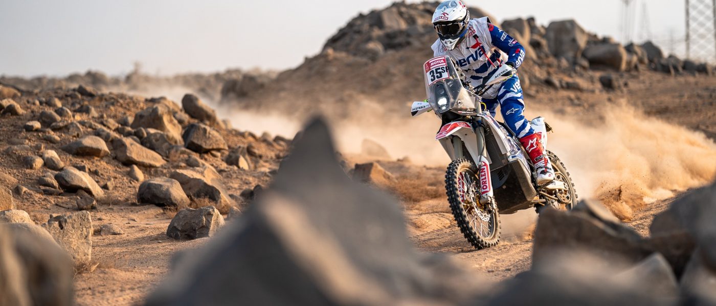 Jak przystało na zeszłorocznego zwycięzcę, pierwszy wśród motocyklistów na odcinek wyruszył Toby Price. Już samo przecieranie szlaków to wielkie utrudnienie dla zawodnika, a w dodatku Australijczyk raptem po 15 km zaczął mieć problemy z roadbookiem. Na szczęście stawka zdążyła się już wymieszać i Toby wypatrzył kurz i ślady innych zawodników, więc utrzymywał się za nimi dopóki nie ogarnął zaciętego roadbooka. Gdy to już nastąpiło, mógł w pełni wykazać się swoim wściekłym tempem, co doprowadziło go do wygranej na tym etapie. Na mecie stwierdził jednak, że tylko na papierze ten wynik wygląda dobrze. Nad głowa wisi mu bowiem widmo kary za prawdopodobne ominięcie punktu kontrolnego – w końcu bez roadbooka ciężko go zaliczyć. To ma się jednak dopiero rozstrzygnąć, gdy sędziowie dokładnie sprawdzą wyniki. 2 minuty za Pricem, na mecie odhaczył się Amerykanin Ricky Brabec.