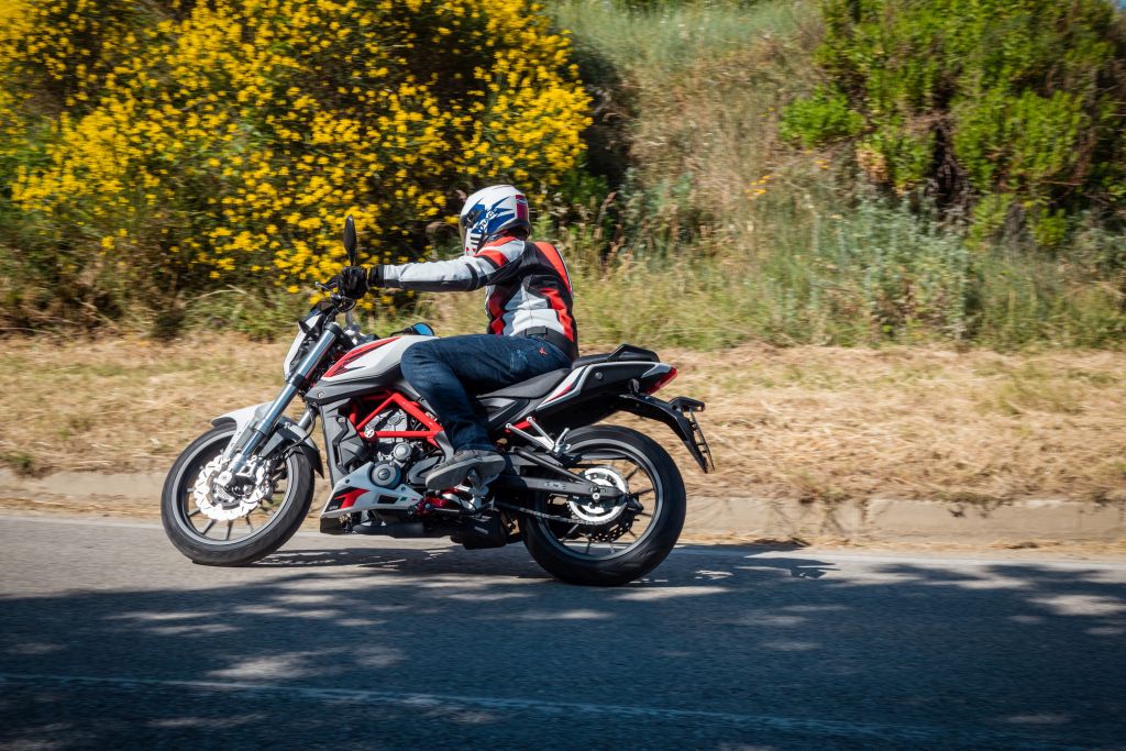 Tutaj właśnie kryje się rozrywkowy potencjał większego nakeda Benelli, choć moc silnika, która na papierze nie wygląda źle, jest uwalniana dopiero przy 11 000 obr./min. Na maksymalny moment, wynoszący 25,6 Nm, możemy liczyć przy obrotach o 2000 niższych. Nietrudno się domyślić, że elastyczność nie jest jego mocną stroną. Zatem zabawa zaczyna się dopiero powyżej 7000 obr./min. Wskutek tego jazda wydaje się znacznie bardziej dynamiczna, niż w rzeczywistości jest i dostarcza całkiem niezłych wrażeń. Naprawdę, bardzo polubiłem „większego benka”.