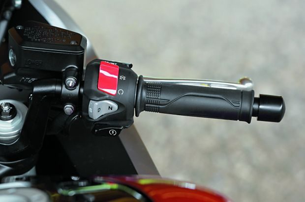 VFR 1200F ze skrzynią DCT nie ma klamki sprzęgła i dźwigni zmiany biegów przy lewej stopie. Ale to wcale nie znaczy, że Honda nie ma sprzęgła. Przeciwnie, są aż dwa. Kiedy pracuje jedno, drugie wciąż czuwa i ?trzyma? w pogotowiu zapiętą kolejną parę kół zębatych, aby szybko i sprawnie uruchomić je, gdy tylko przyjdzie na nie czas. W zależności od wybranego trybu, będzie to robić sam motocykl, bądź kierowca, który guzikami na kierownicy może wymusić zmianę biegów.