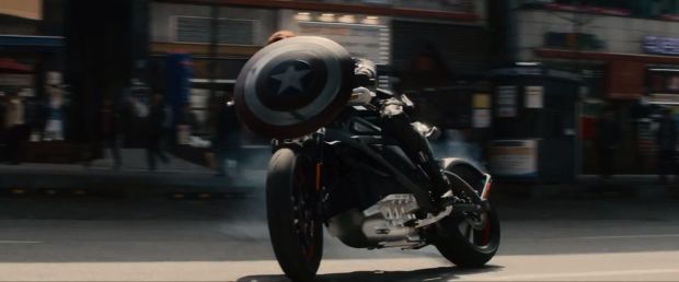 W filmie pojawia się też Harley-Davidson Street 750, którym porusza się Kapitan Ameryka grany przez Chrisa Evansa. Ten motocykl również nie miał łatwo na planie nowych Avengersów.