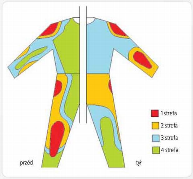 Jak widać na wykresie szczególnie narażone są ramiona oraz przedramiona. Do strefy dużego ryzyka urazu należy dopisać też okolice piszczeli i bioder. Oczywiście także głowa oraz dłonie trzeba odpowiednio zabezpieczyć. Warto zatem wyposażyć się w odpowiednie ciuchy. Nie mówimy tu o najdroższej i najbardziej ekskluzywnej półce, ale o czymś więcej niż kurtka ortalionowa wiatroodporna ze sklepu sportowego. Buty typu baletki to też kiepski pomysł!