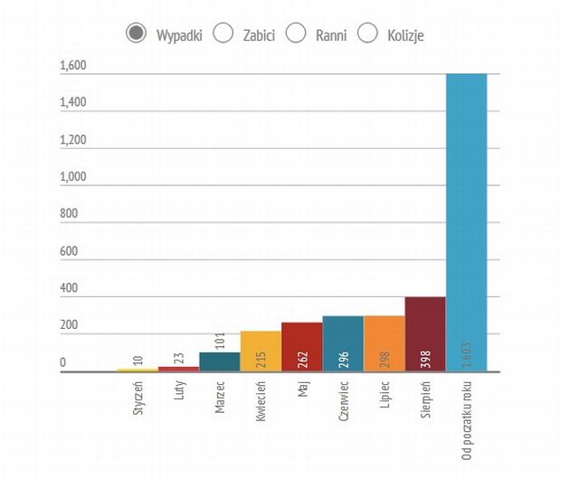 Znacząco zwiększyła się także niestety liczba rannych. W samym sierpniu było ich 441 osób. Od stycznia natomiast ta liczba urosła już do 1 682 osób.