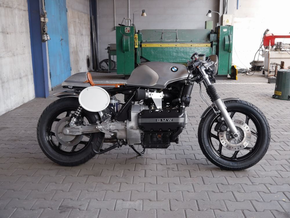 Na bazę do budowy cafe racera wybrałem K100 RS z 1986 roku. Nie tylko ze względu na cenę i osiągi, ale także z uwagi na piękną ramę i solidność. Zadbane modele mogą przejechać bez remontu do 300 tys. km. Nie przeszkadzało mi w nim nawet to, że ten model jest dziś chyba idealnym przykładem „designe’u” lat 80. Można go postawić obok wielkich pudeł komputerów ATARI, magnetowidów VHS i aut wyglądających bardziej kanciaście, niż dzisiejsze skrzynki narzędziowe.
