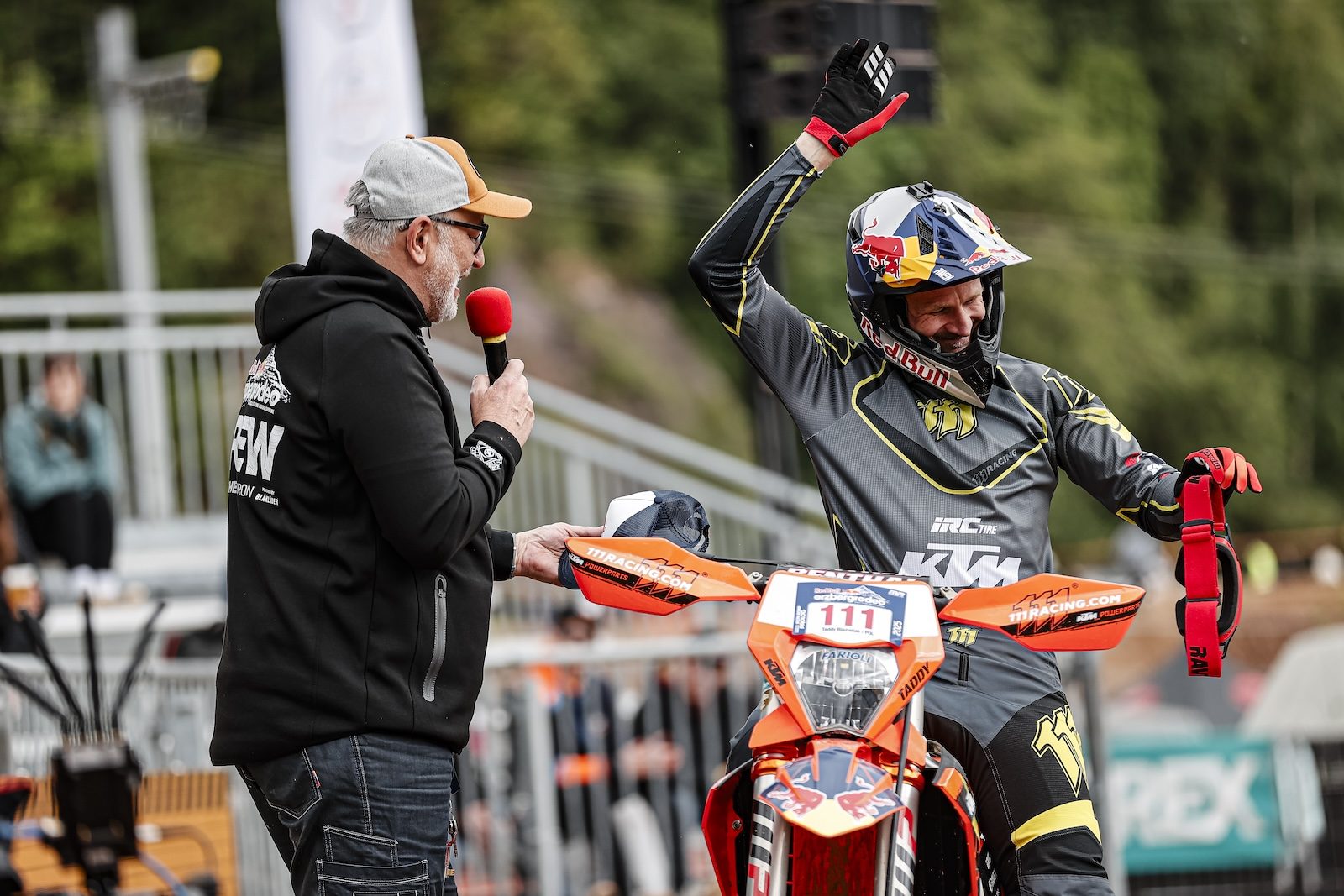 Zarówno w piątek, jak i w sobotę (13 i 14 czerwca, od godziny 16:30), Tadeusz pojawi się w Mikołajkach, aby wziąć udział w pokazowych wyścigach SuperEnduro – i to jeszcze w wersji Straight Rhythm. Widowiskowe zmagania na torze bez zakrętów, nafaszerowanym potężnymi balami, głazami i skokami, rozegrane zostaną w strefie kibica zlokalizowanej w Rally Fan Parku koło Areny Mikołajki, podczas ORLEN OIL 81. Rajdu Polski.
