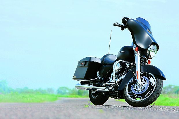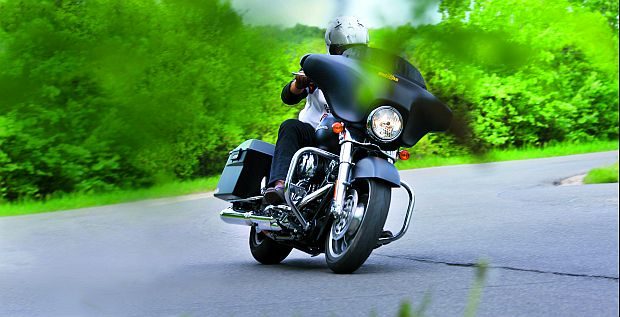 W Harleyowej rodzinie FLH, zwanej potocznie Touringami, Street Glide należy do kategorii „lekkiej”, czyli waży grubo poniżej 400 kg. Mimo pozornej ociężałości, ma taką sama masę, jak optycznie dużo lżejszy, najskromniejszy w klasie Road King. To zapewne owiewka Bat Wing i spore, plastikowe kufry dodają mu powagi. Relatywnie niewielka masa powoduje, że motocykl podczas jazdy nie wydaje się krowiasty, a wprost przeciwnie – względnie łatwo jest zmusić go do serii szybszych skrętów podkreślanych darciem podłogami o asfalt.