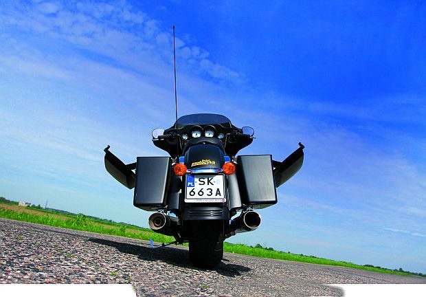 Mniej wprawny harleyowiec będzie potrzebował instrukcji do kufrów bocznych, bo tak mało praktycznego i nieporęcznego w obsłudze systemu zamykania nie spotkałem jeszcze chyba w żadnym innym motocyklu (może poza starszym modelem Triumpha Sprint ST).