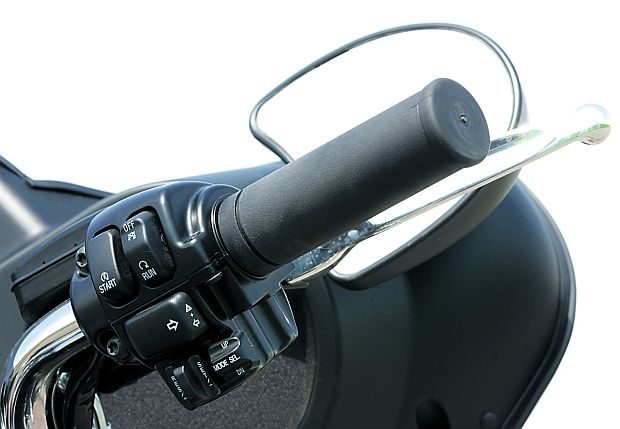 Schody zaczynają się, gdy będziesz chciał dobrać się do przycisków, które jak winogrona porastają obie manetki. Z lewą jeszcze jest pół biedy, bo oprócz standardowych guzików do migacza, zmiany świateł i klaksonu mamy do dyspozycji jedynie sterowanie radiem. Po prawej stronie znajduje się kilka tajemniczych guzików, których funkcji bez pomocy podręcznika i ćwiczeń nie udało mi się łatwo rozszyfrować. Zainteresowanym polecam opasłą lekturę instrukcji obsługi.