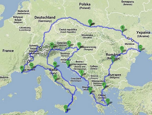 W tym czasie chce pokonać ponad 11 tysięcy kilometrów i odwiedzić 15 krajów: Ukrainę, Mołdawię, Rumunię, Bułgarię, Grecję, Albanię, Czarnogórę, Chorwację, Węgry, Austrię, Czechy, Włochy, Francję, Szwajcarię i Niemcy.