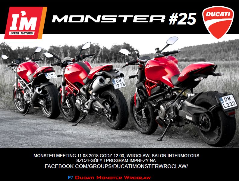 Już 11-go sierpnia we Wrocławiu, pod patronatem salonu I’M Inter Motors Wrocław i grupy Ducati Monster Wrocław odbędzie się pierwsze w Polsce spotkanie sympatyków i właścicieli Ducati Monstera pod hasłem Monster#25.