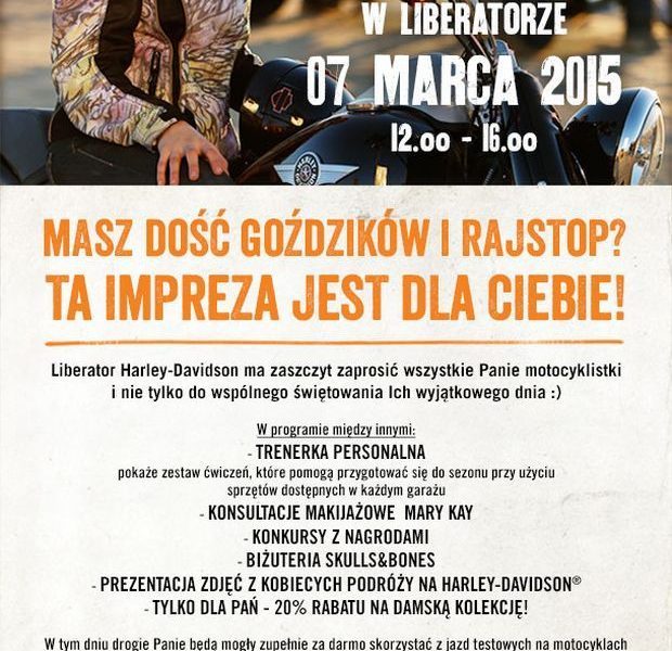 Liberator Harley-Davidson ma zaszczyt zaprosić wszystkie Panie motocyklistki i nie tylko do wspólnego świętowania Ich wyjątkowego dnia. Masz dość goździków i rajstop? Ten event jest dla Ciebie!