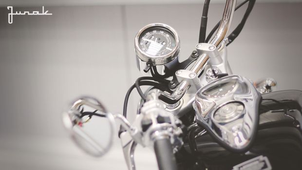 Wzrok przyciąga ze względu na chromowane detale, olschoolowe lampy i oryginalne brzmienie. Duży zbiornik paliwa z kolei jest dumnie sygnowany logo Junak.