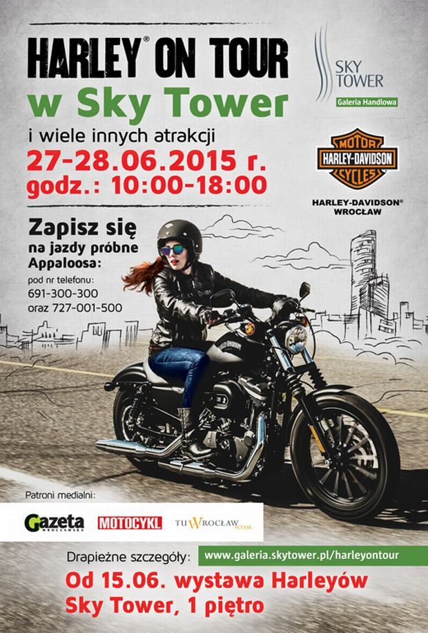 Ponad 20 najnowszych modeli motocykli przywiezie pod Sky Tower firmowy truck Harleya. Weekendowe spotkanie z legendą branży motocyklowej to doskonała okazja, aby rozpocząć swoją przygodę na dwóch kółkach. Wystarczy zapisać się na bezpłatne jazdy próbne, aby przeżyć niesamowite chwile przemierzając ulice stolicy Dolnego Śląska na tych kultowych maszynach. Więcej informacji o zapisach na www.galeria.skytower.pl.