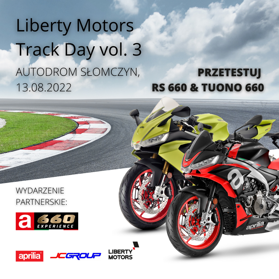 Partnerem tej edycji Liberty Motors Track Day będzie Aprilia Polska, która udostępni możliwość bezpłatnego przetestowania motocykli RS660 oraz Tuono 660. Szczegóły dostępne będą na miejscu.