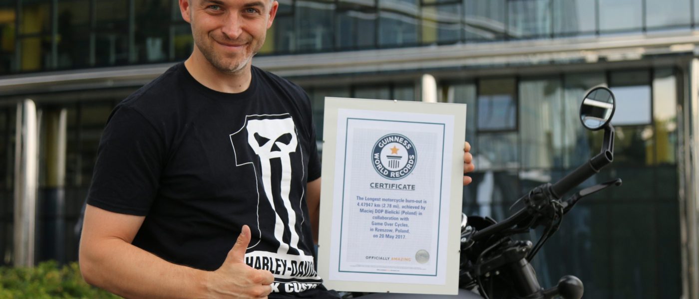 Wydarzenie zostało zorganizowane przez salon GOC Harley-Davidson Rzeszów, największy salon marki Harley-Davidson w Polsce i Europie Środkowo-Wschodniej oraz firmę Game Over Cycles, producenta customów. Nowy rekord wynosi 4,5 km i został ustanowiony w pierwszej próbie. Maszyna, na której pobito rekord, to Harley-Davidson Street Rod. Poprzedni rekord został ustanowiony rok temu w Stanach Zjednoczonych, gdzie na motocyklu […]
