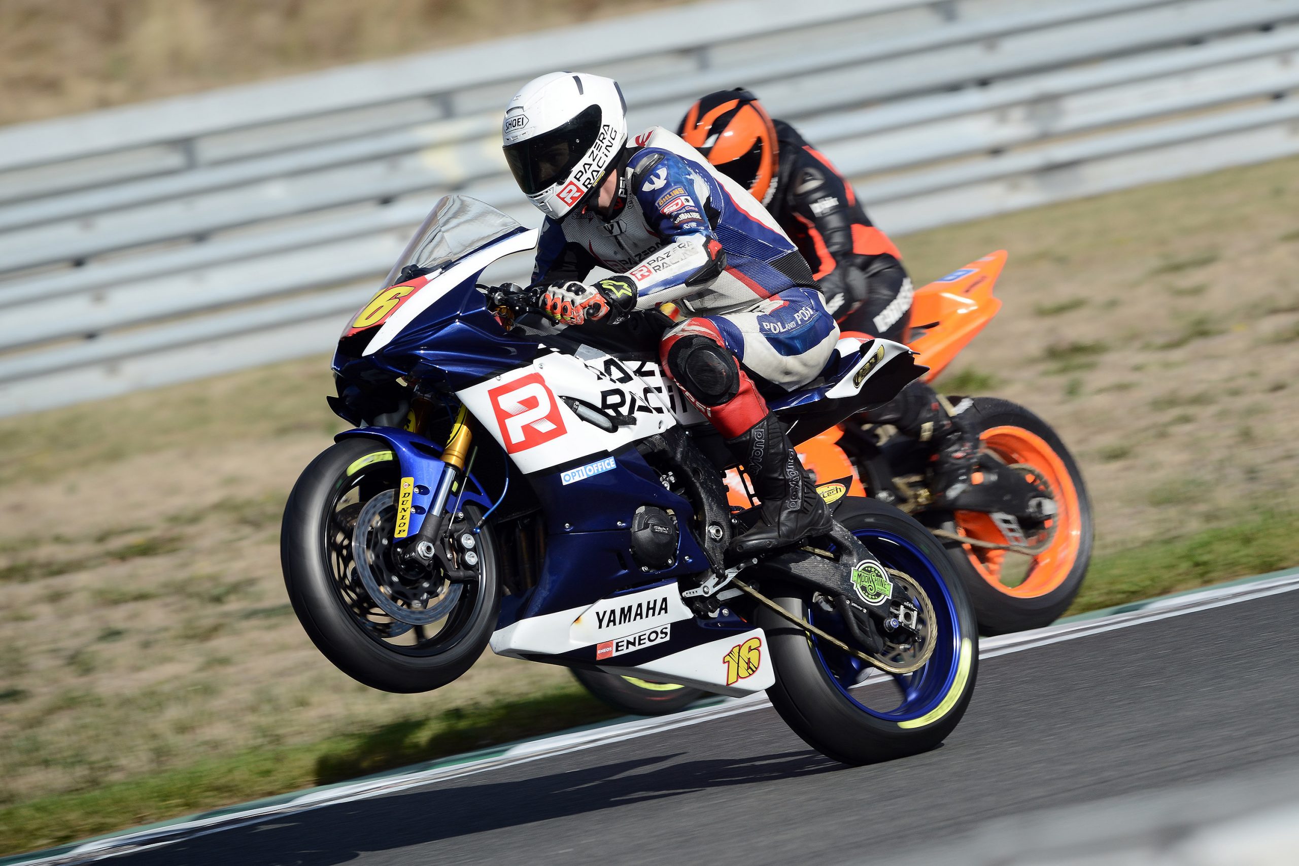 „Postanowiłem wystartować w Niemczech mimo bardzo silnego bólu pleców, bo nie zamierzałem oddawać podium w klasyfikacji generalnej bez walki – wyjaśnia dosiadający Yamahy R6 Patryk Pazera. – Oschersleben to bardzo kręty i techniczny, a przez to wymagający fizycznie tor, dlatego był to dla mnie bardzo trudny weekend, ale zakończył się podwójnym podium, które pozwoliło mi obronić trzecie miejsce w tabeli i sięgnąć po tytuł drugiego wicemistrza Polski. Jestem więc bardzo zadowolony i dziękuję całemu zespołowi.”