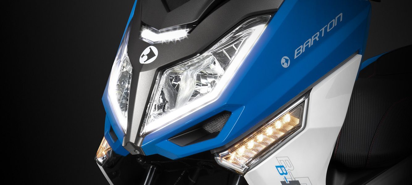 Barton B-Max przyciąga uwagę nowoczesnym designem czerpiącym z japońskich klasyków. Ostre dynamiczne linie nadwozia i intensywny niebieski kolor nadają mu sportowego charakteru. Nowoczesna sylwetka podkreślona jest ciekawie zaprojektowanym oświetleniem led – zarówno w reflektorze jak i w lampie tylnej z dodatkową lampą tablicy rejestracyjnej. O prędkości, zużyciu paliwa, obrotach (ale również o aktualnej godzinie i kondycji akumulatora) informują dwa cyfrowe zegary podświetlane na niebiesko. Pojazd osadzony jest na aluminiowych kołach 14 cali z przodu i 13 cali z tyłu – oba wyposażone są w hamulce tarczowe.