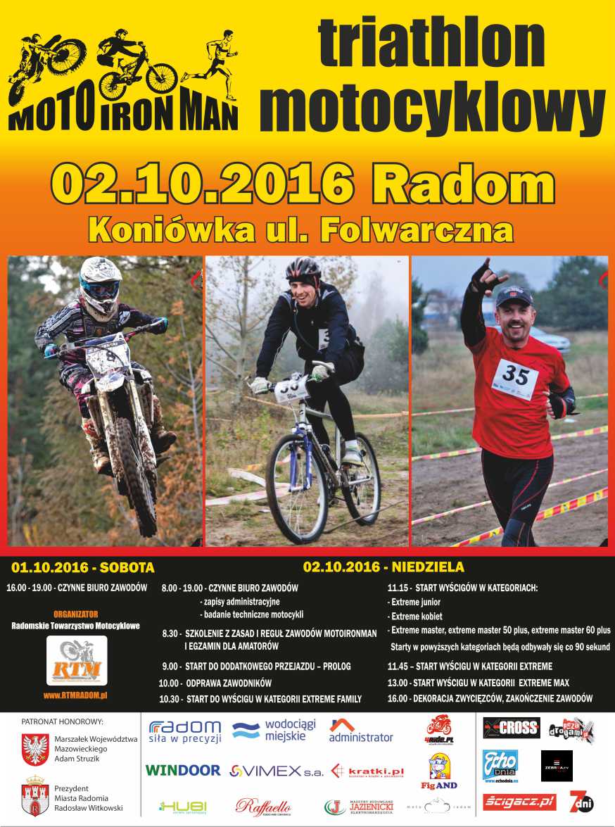 Więcej informacji na www.motoironman.pl lub https://www.facebook.com/RTMRadom/