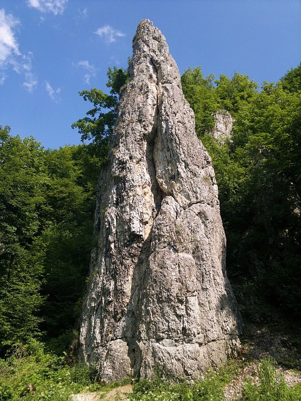 To nie był jednak koniec trasy wiodącej przez las i z zaciekawieniem ruszyłem nią dalej zastanawiając się, co się kryje dalej. Moim oczom ukazały się po chwili piękne potężne skały stojące w oddali. Zatrzymywałem się praktycznie co chwilę, żeby uwiecznić te skały na zdjęciach. A kiedy tylko ruszyłem łykając kolejne kilometry, to kolejne piękne widoki wyłaniały mi się na tle błękitnego nieba.