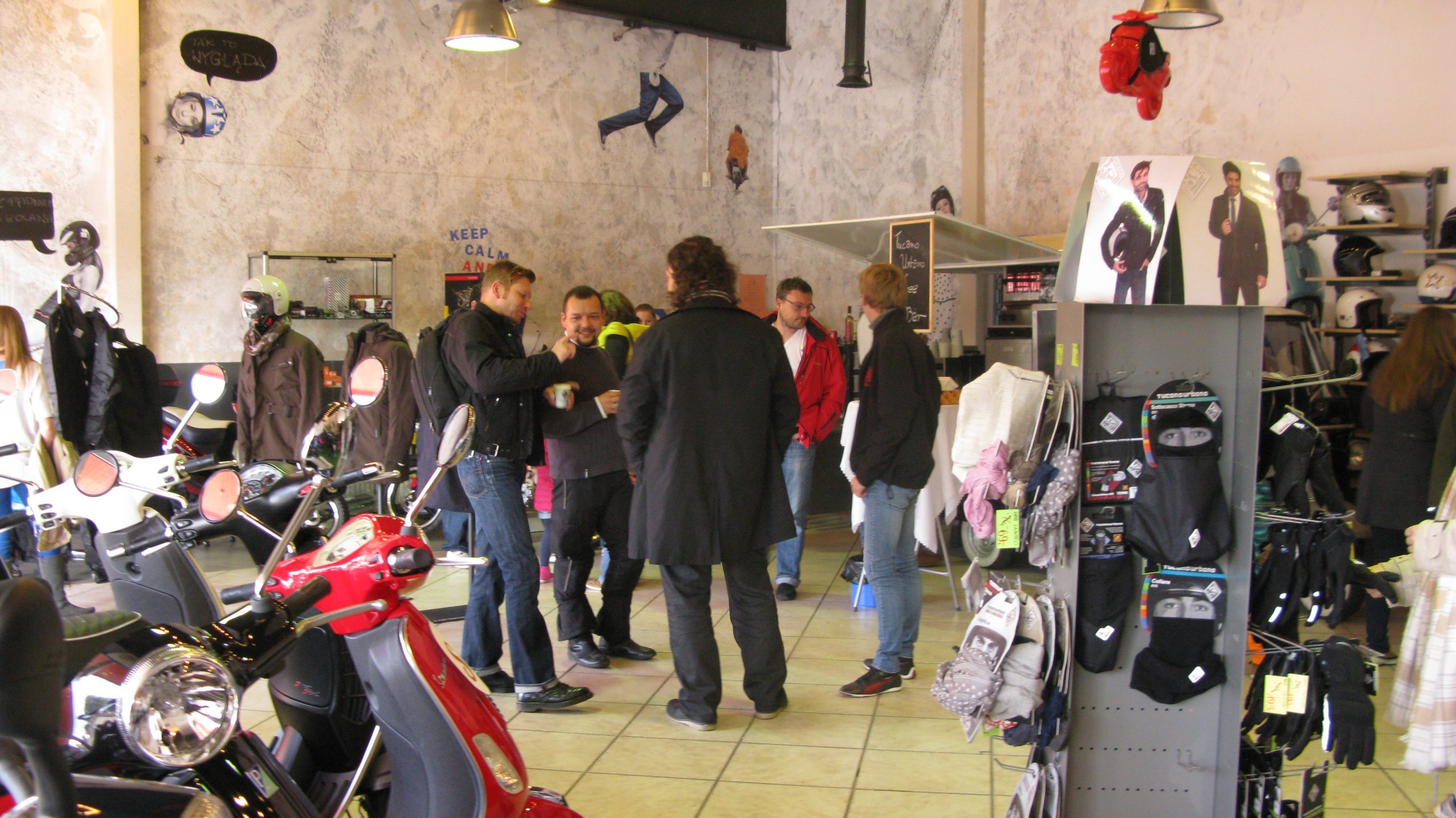 W ostatnią sobotę (5 października) w salonie zorganizowano pokaz nowej kolekcji skuterowej odzieży Tukano Urbano połączonej z promocyjna sprzedażą tych ekskluzywnych ciuchów. Impreza cieszyła się sporym zainteresowaniem, korzystając ze znakomitej pogody pojawiło się kilkanaście włoskich rollerów, a atmosfera była rzeczywiście rodzinna. Na pokazach nie zabrakło także naszej redakcji, przedstawiamy więc krótką fotorelację.