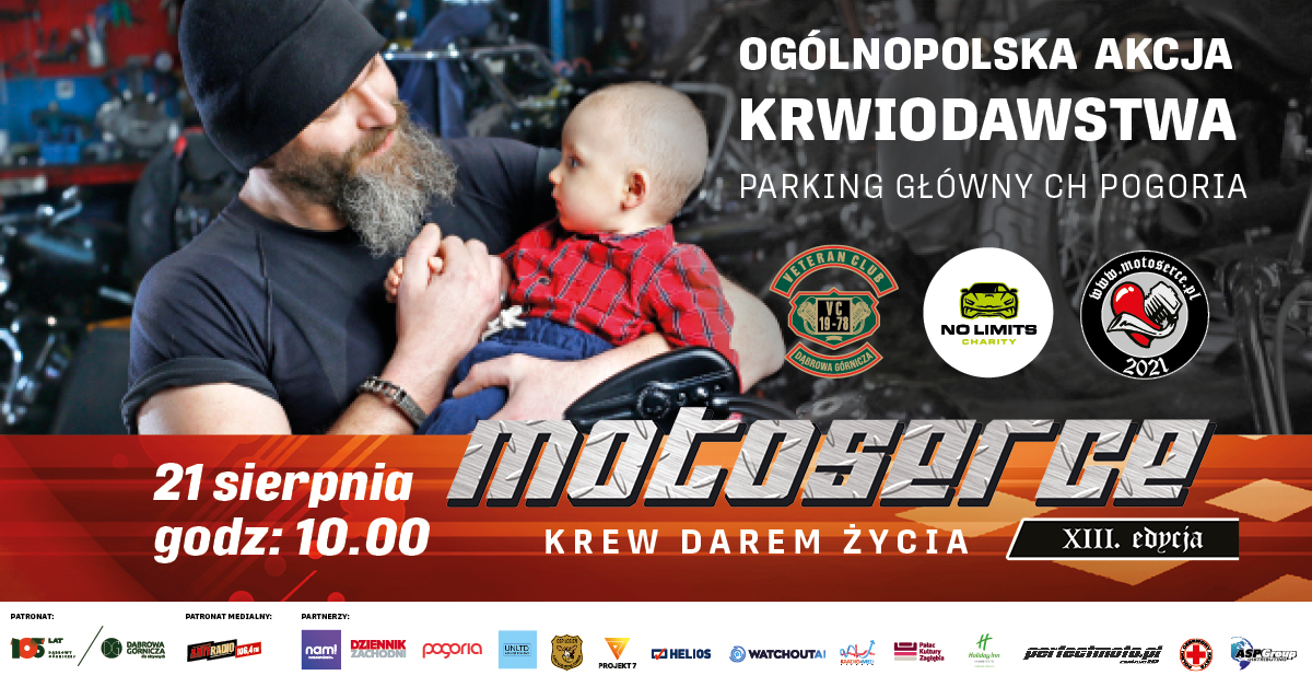 Motoserce 2021 w Dąbrowie Górniczej odbędzie się 21 sierpnia, w godz. 10:00-18:00. W tym roku, poza motocyklistami, imprezę współtworzyć będą także miłośnicy czterech kółek, zrzeszonych pod szyldem No Limits Charity (ludzi z różnych części Polski, których połączyła miłość do motoryzacji oraz pomagania). Wyjątkową atrakcją będzie zlot samochodów klasy premium – m.in Lamborghini, Porsche, Ferrari, BMW czy Ford Mustang – oraz retro (samochodów klasycznych i zabytkowych), wśród nich unikatowy American LaFrance z 1919 r. Uwielbiana przez Zagłębian parada wyruszy ulicami miasta o godz. 12:30 spod CH Pogoria, a podczas przystanku przy Hotelu Holiday INN na jej uczestników czekać będzie słodki poczęstunek.