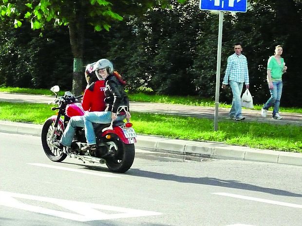 Kiedy jedzie się w dwie osoby, robi się trochę niebezpiecznie. Nawet małe przechylenie w lewą stronę powoduje ocieranie podstawki bocznej o asfalt. Już wiele motocykli wywróciłem podwieszając je w zakręcie o tłumiki, stopki centralne czy inne wystające elementy, więc stres jest niemały. Sposób na to jest jeden: Junakiem po rondzie trzeba jeździć po prostu bardzo wolno. Teraz nie zostało mi nic innego, jak pokonywać kolejne kilometry i czerpać maksymalną frajdę, jaką może mi dać nasz redakcyjny, biało czerwony chopper.