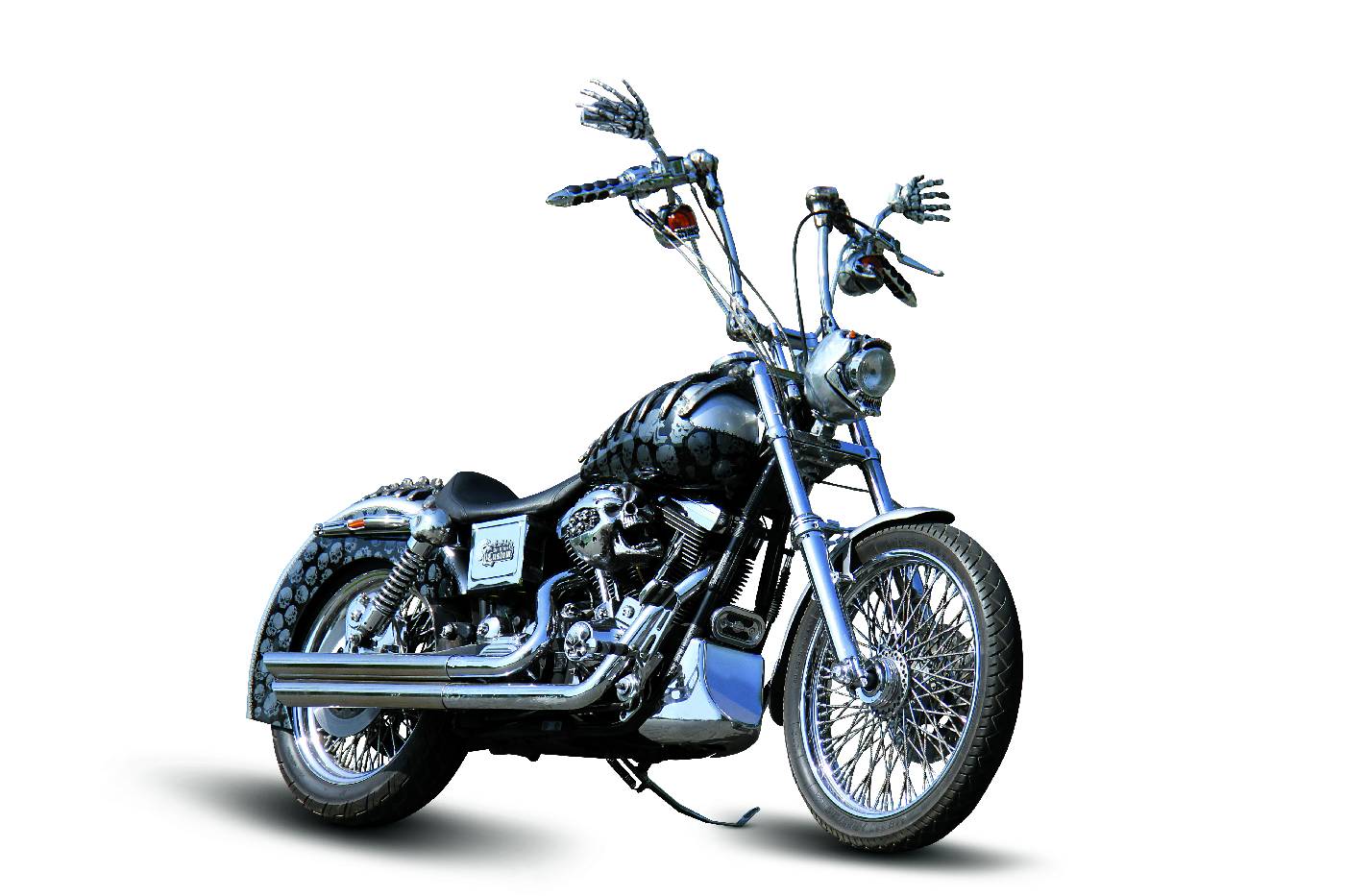 Harley w nowym wcieleniu otrzymał imię „Szkieletor”. Faktycznie, po obróbce w firmie Art Ritter Custom, ten Harley mógłby zagrać czołową rolę w niejednym horrorze i bez wątpienia byłby bardziej przekonujący, niż większość aktorów występujących w takich produkcjach. Niemal każdy element maszyny ma kształt czaszki albo jest nią ozdobiony. Formę czaszki przyjęły elementy oświetlenia, filtr powietrza, górne węzły mocowania tylnych amortyzatorów, obudowa klaksonu. Kierownica wygląda, jakby tworzyły ją metalowe kości a lusterka trzymane są przez odarte z ciała dłonie.