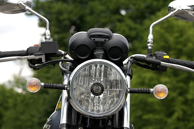 Kształt reflektora również nawiązuje do tradycji. A przy tym, dzięki sporym rozmiarom, wraz z zespołem wskaźników daje kierowcy pewną osłonę przed wiatrem.