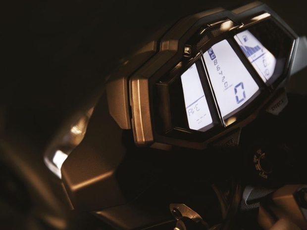 Wyświetlacz LCD w zestawie wskaźników został zainspirowany estetyką smartfonów, na co wskazują słupkowe wyświetlacze, wśród których znajduje się graficzny kierunkowskaz i obrotomierz. Po uruchomieniu motocykla kierowcę wita animacja.