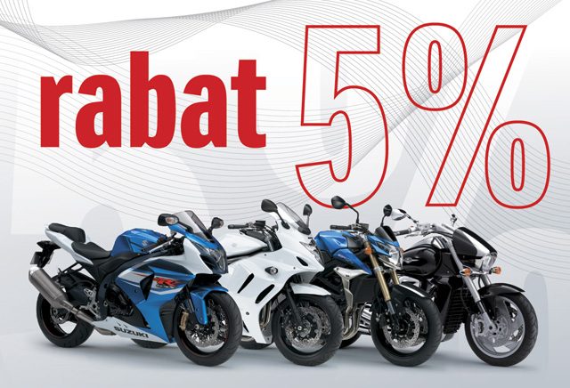 Odwiedzający otrzymają kupony uprawniające do zakupu z rabatem 5% wszystkich nowych motocykli Suzuki, znajdujących się w magazynach firmy lub dealerów. Na skorzystanie z promocji i realizację kuponów u autoryzowanych dealerów Suzuki, jest czas do 31 marca br. Możliwość zdobycia upragnionego motocykla taniej to nie jedyny powód, dla którego warto odwiedzić stoisko Suzuki na IV Ogólnopolskiej Wystawie Motocykli i Skuterów 2012.