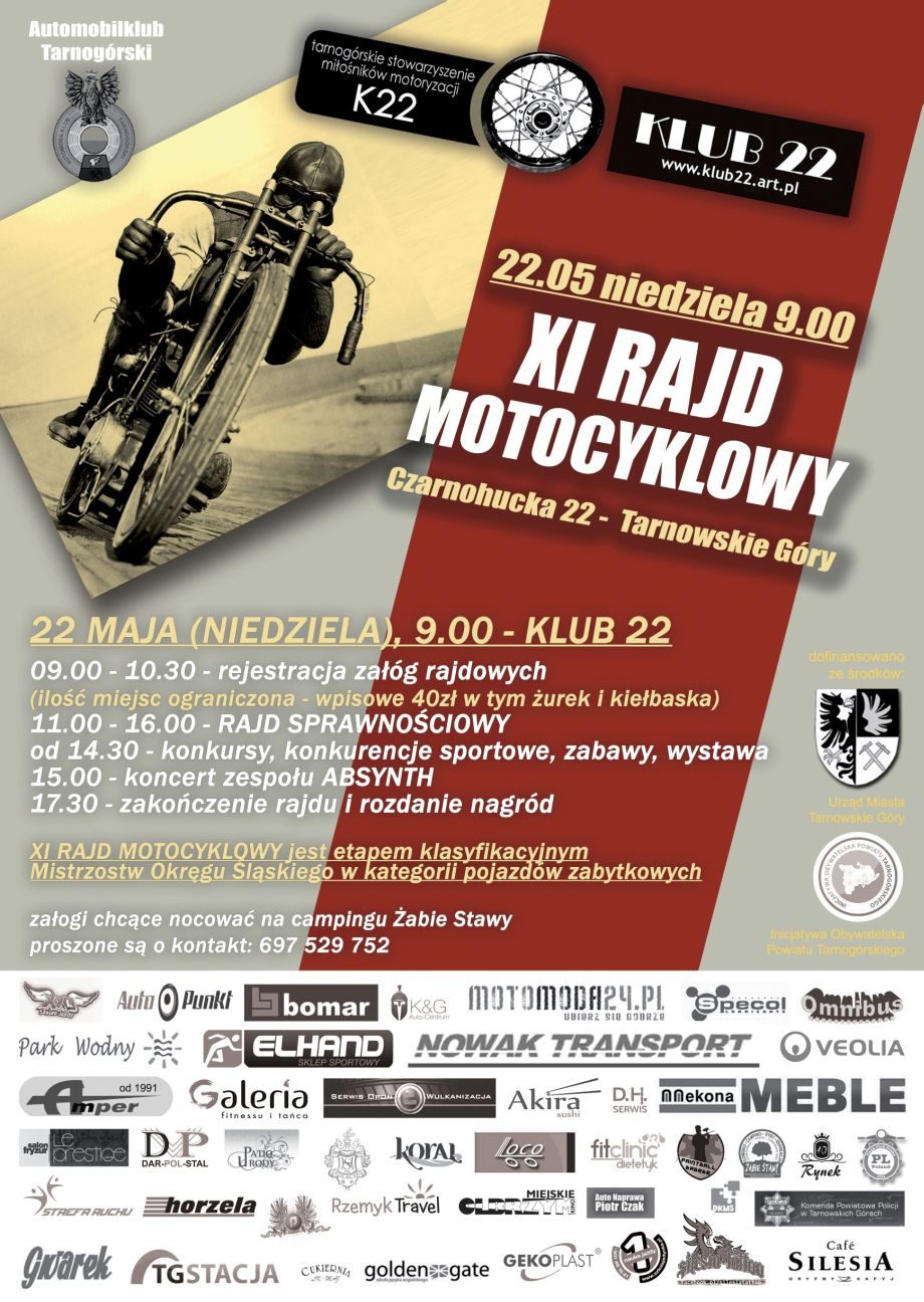 Miejsce: Klub 22, Tarnowskie Góry, ul. Czarnohucka 22, woj. śląskie. Organizator: Klub 22 i Automobilklub Tarnogórski. Kontakt: Krzysztof tel. 693 282 032, Adam tel. 601 408 378, e-mail info@klub22.art.pl. Więcej na: www.klub22.art.pl
