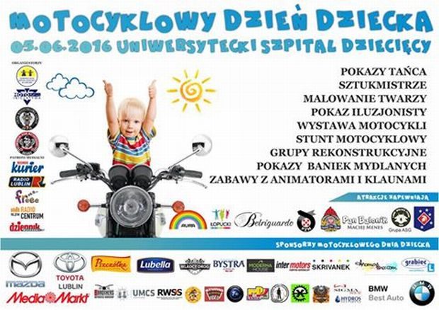 5 czerwca w Lublinie odbędzie się Motocyklowy Dzień Dziecka. Weźcie udział i w tym wyjątkowym dniu postarajcie się by chore dzieciaki miały powody do radości!