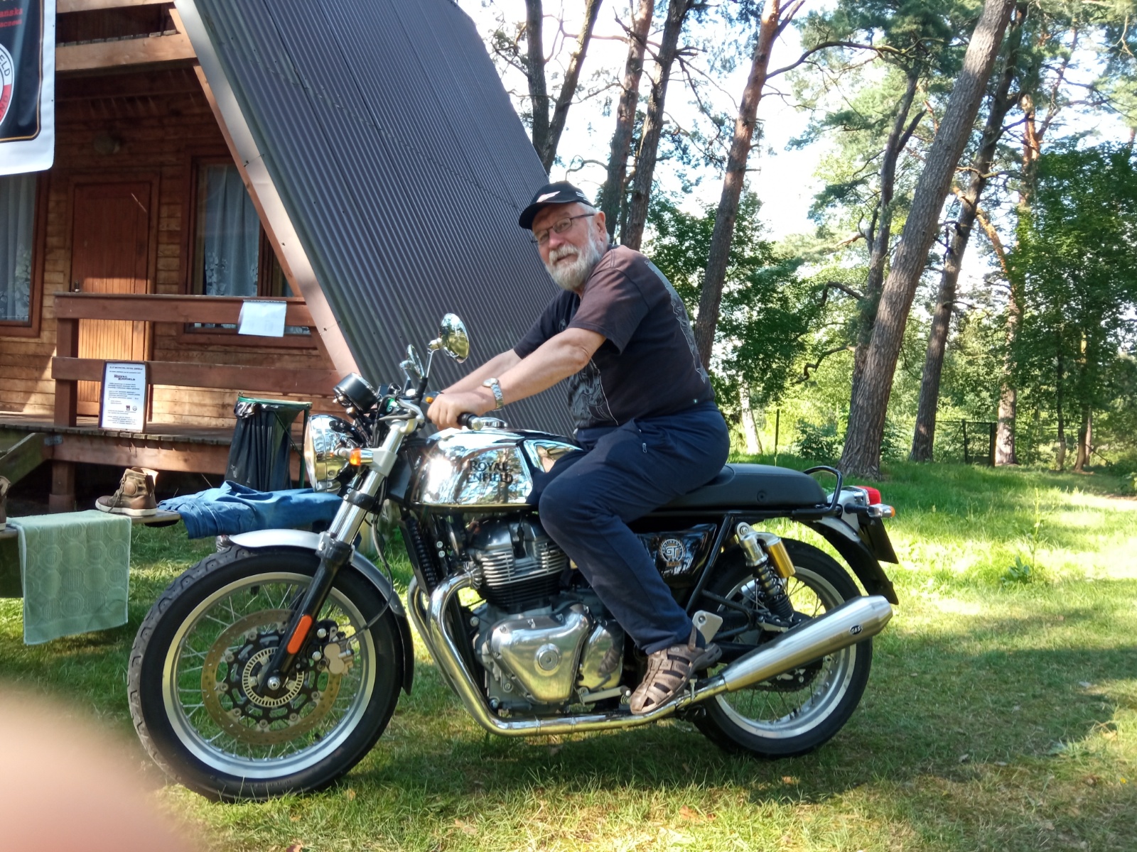 Nie można więc się dziwić, że zlot fanów marki organizowany przez Royal Enfield Club Poland jest imprezą kameralną. W tym roku koordynator imprezy – Zbyszek Smus – na miejsce spotkania wyznaczył ośrodek Osada Puszczańska, nieopodal Sochaczewa. Mimo delikatnie mówiąc niesprzyjającej pogody w piątek 6 lipca na miejscu zjawiło się ok 10 Royali i kilka zaprzyjaźnionych maszyn innych marek.