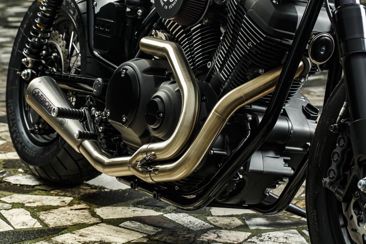 Motocykl wyposażono w zawieszenie przednie oraz zaciski z VMaxa. Piękne felgi to dzieło firmy Borrani. Zbiornik paliwa oraz siedzenie to ręczna robota. Wykonanie tego pierwszego z aluminium pozwoliło zredukować nieco masę motocykla. Również panele boczne zrobiono z aluminium. Wydech wijący się na boku motocykla to z kolei produkt marki Arrow.