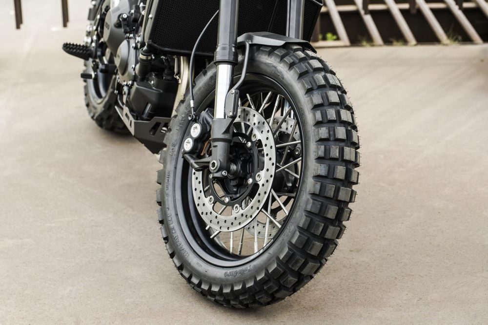 Yamaha otrzymała nowe barwy, koła Borrani 17″ ze szprychami oraz opony Continental TKC. Nie zabrakło też modyfikacji tylnego zawieszenie czy hamulców. Kierownica to produkt marki Magura a gripy pochodzą od Biltwell Renegade. Całości dopełniają: wydech SC Project, aluminiowe błotniki oraz osłona silnika a także lampa w stylu tej z modelu MT-03.