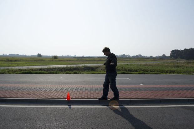 UWAGA: Ćwicz ostrożnie, jesteś na drodze publicznej! Utrzymuj wzrok w wyznaczonych punktach i kontakt z pomocnikiem.