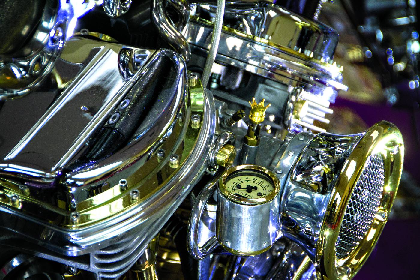 Wszystkie części do budowy motocykla, zaprezentowane na zdjęciach, są wykonane ręcznie. Z części seryjnych wykorzystałem silnik, skrzynię biegów, koła, przednie zawieszenie oraz armaturę kierownicy firmy Kustom Tech. Pozostałe elementy to efekt pracy chłopaków z firmy oraz ludzi służących pomocą przy budowie tego choppera. To, co możecie zaobserwować, to efekt wspólnej pracy. Bez niej motocykl nie byłby gotowy na tegoroczne targi.